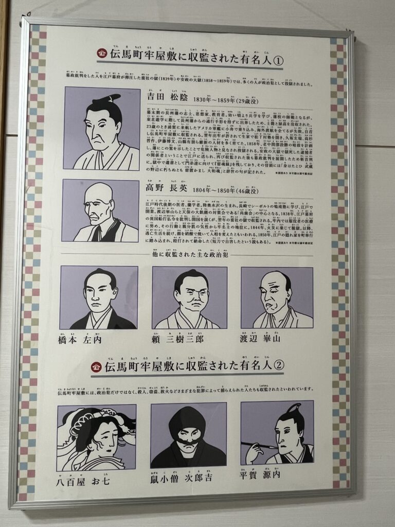 【写真】伝馬町牢屋敷に収監された有名人のパネルがありました。