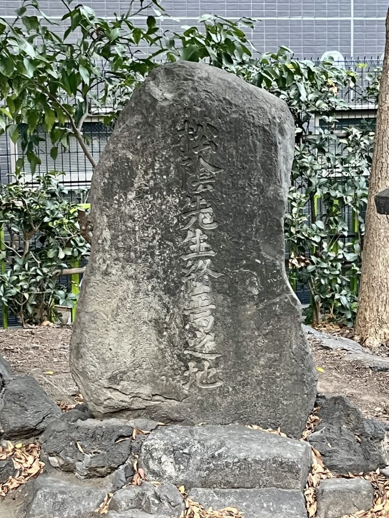 【写真】公園内には「松蔭先生終焉之地」と書かれた石碑がありました。幕末、幕府の政策に反対する人たちを次々と弾圧する「安政の大獄」が行われました。幕府に批判的だった吉田松陰も捕えられ、伝馬町牢屋敷に投獄されて処刑されたのです。